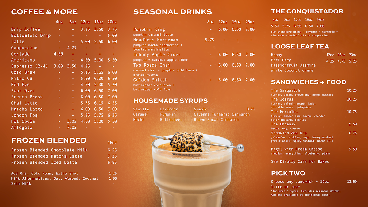 For those craving sustenance, the sandwich selection is equally intriguing. Options like The Sasquatch and The Icarus combine robust flavors with high-quality ingredients, making every bite a savory experience. Each dish, crafted with care, invites you to indulge and linger.